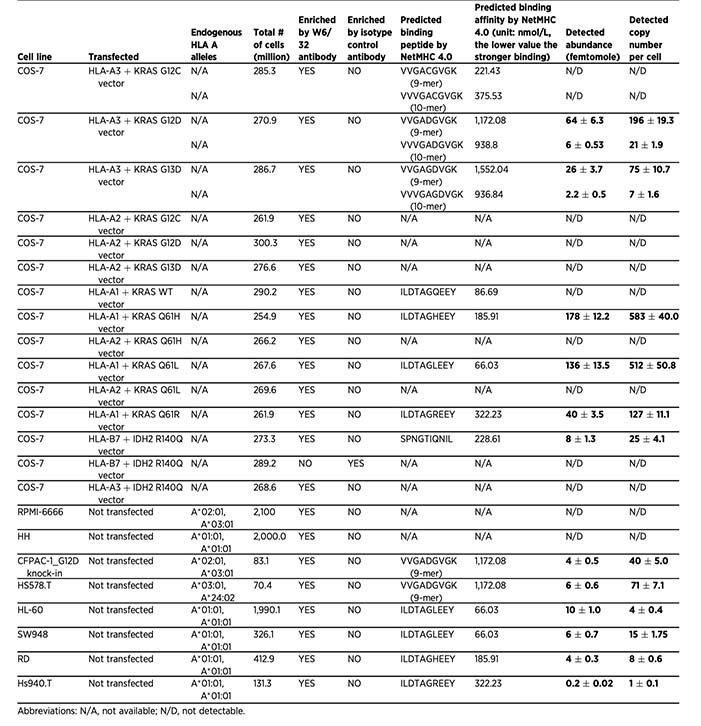 Using this approach, the study directly confirmed neoantigens derived from major cancer driver mutations including KRAS and IDH2, and quantified the number of copies presented on the cell surface.