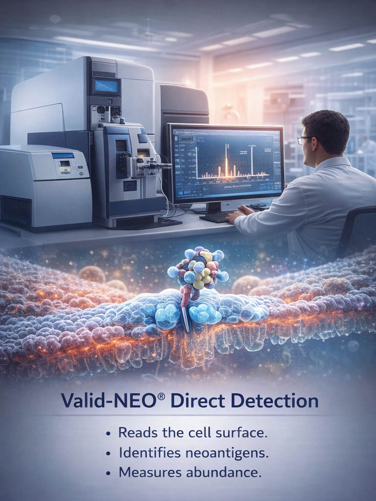 Valid-NEO® is engineered to bring certainty to neoantigen-targeted immunotherapy development through direct detection, quantification, and validation of HLA-presented neoantigens from clinical samples — without prediction and without guesswork.
